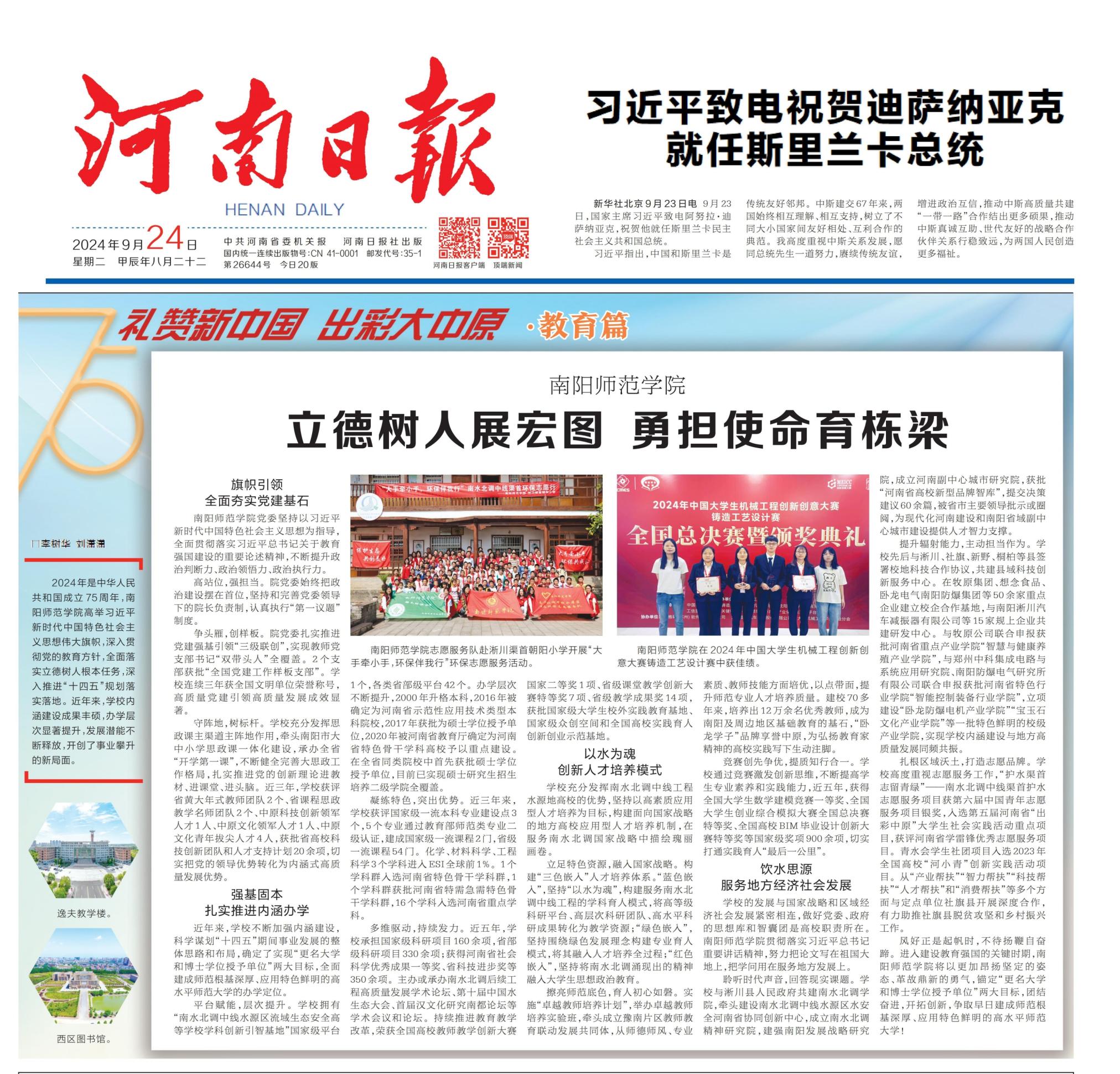 2024年9月24日,《河南日报》“礼赞新中国 出彩大中原·教育篇”栏目刊发文章《8803威尼斯检查中心:立德树人展宏图 勇担使命育栋梁》,全文如下: