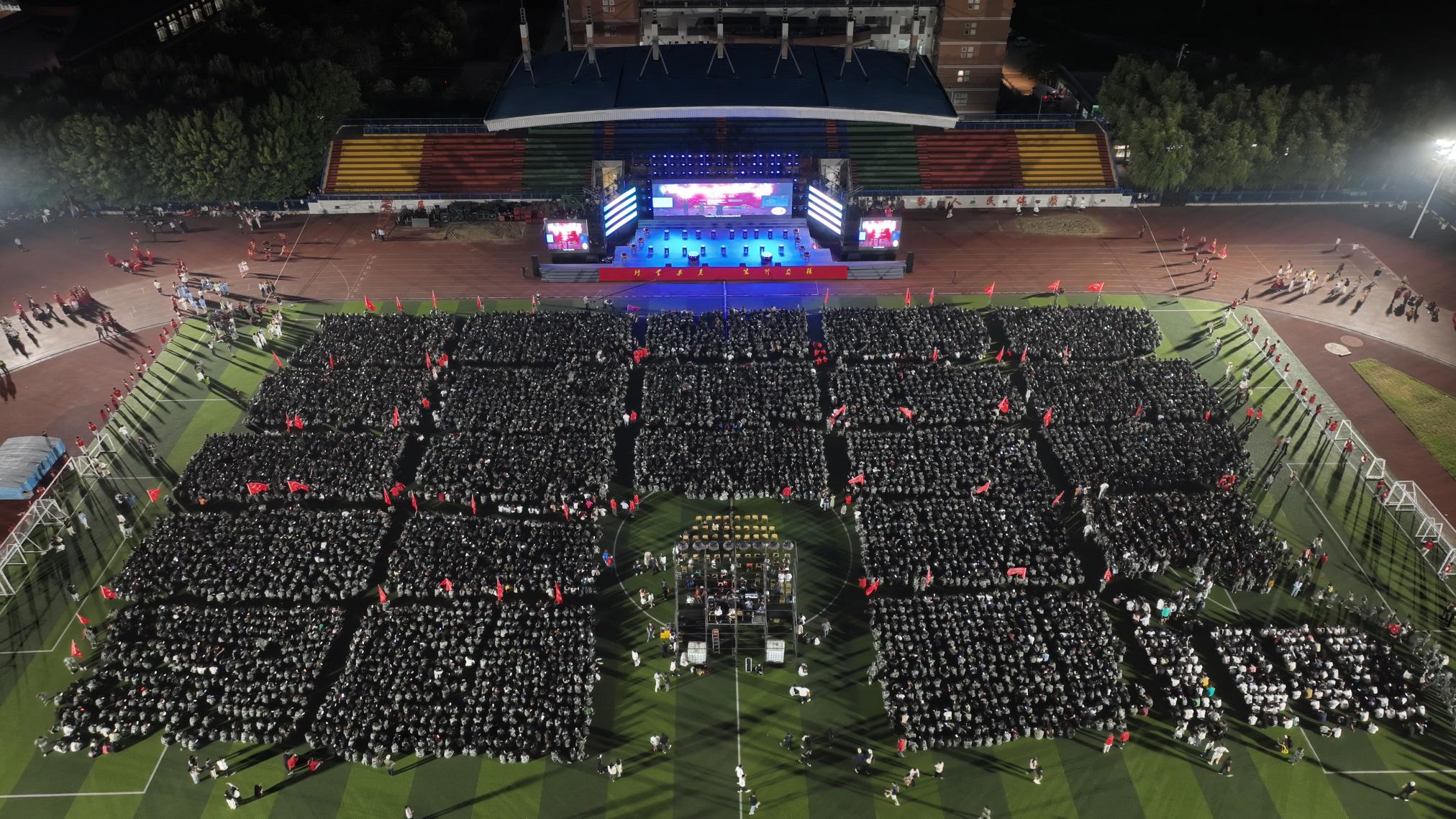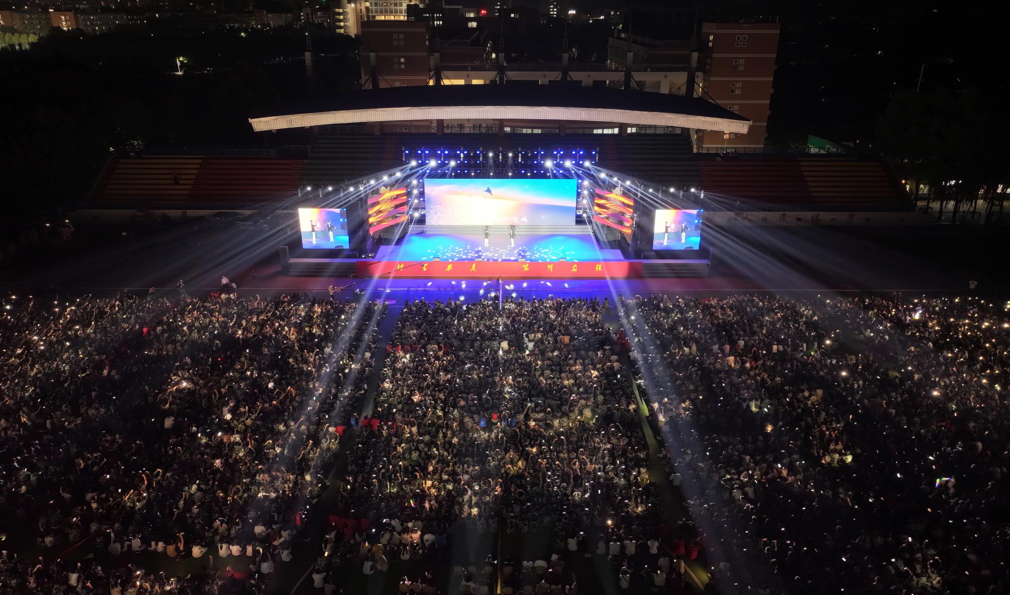 本网讯(杨眉/文 冯一珺 李雯 杨静慧 刘馥涵 卢薇婷/图)团结凝聚力量,奋斗铸就伟业。9月27日晚,由党委宣传部、校团委、公共艺术中心主办的“扬帆起航正当时 风华正茂筑辉煌”庆祝中华人民共和国成立75周年暨2024级迎新晚会在中区田径场举行。校党委书记张宝锋,校纪委书记、监察专员刘守勇出席,相关部门负责同志参加,各学院师生代表、2024级全体军训新生现场观看。