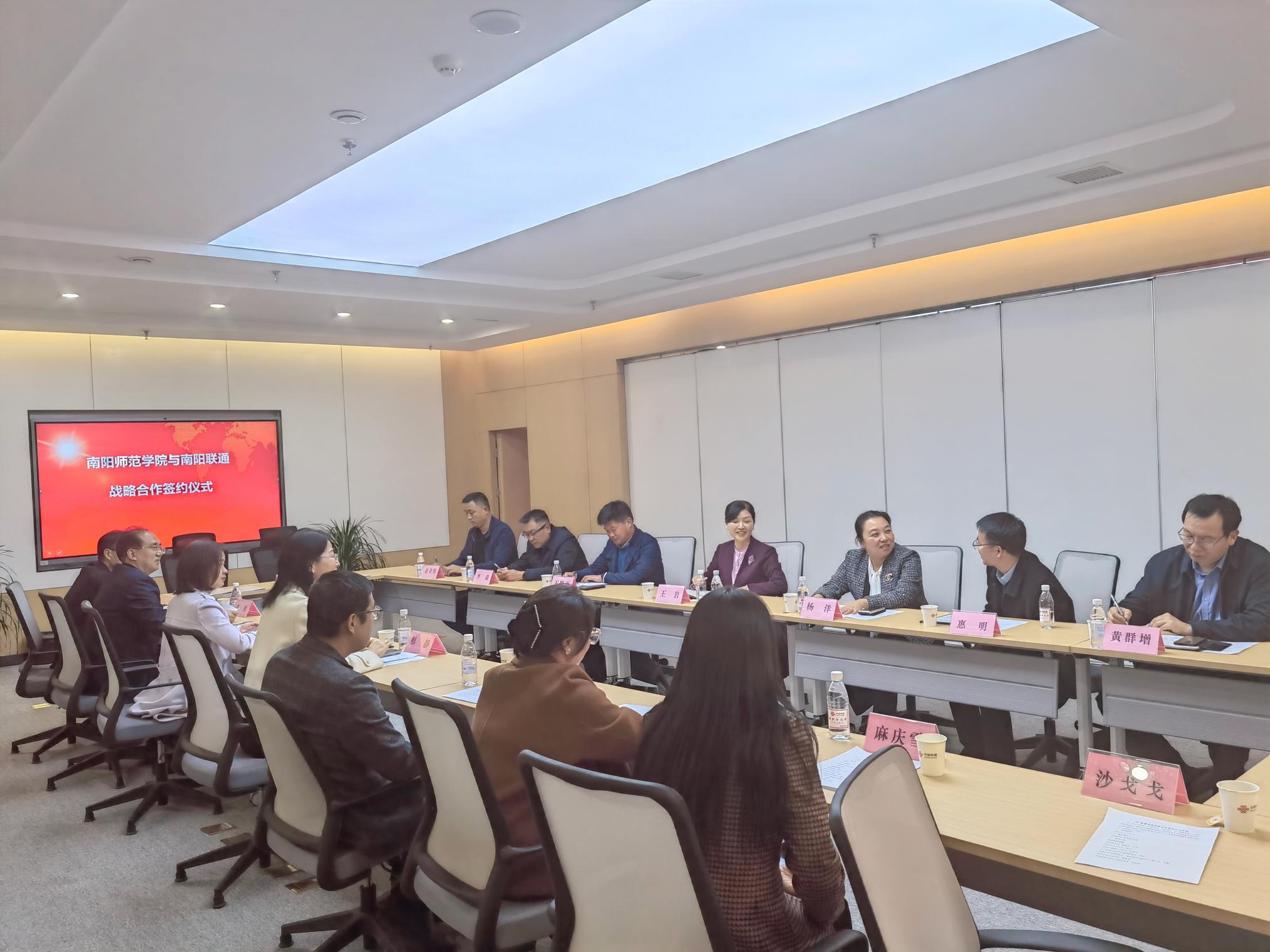 本网讯(通讯员 王典 文/图)11月6日下午,副校长王岩带领国内合作处、信息化管理中心、人工智能与软件工程学院、创新创业学院、劳动服务有限公司等负责同志赴中国联通南阳分公司总部考察并举行“5G+智慧校园”战略合作签约仪式。南阳联通公司党委委员、副总经理肜静陪同并参与活动。